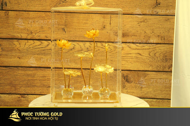 Chậu hoa sen dát vàng