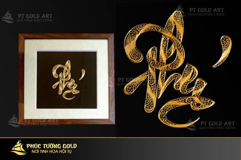Vẫn là lối viết chữ phúc thư pháp nhưng ở đây đã có sự thay đổi về cách thức tạo hình. Với chất liệu bạc mạ vàng dát mỏng, các nghệ nhân đã áp dụng phương pháp xoắn giấy quilling để tạo thành một tác phẩm tuyệt đẹp. Nếu bạn đã quá quen thuộc với hình thức đúc chữ đồng và muốn thay đổi thì đây là một sự lựa chọn hoàn toàn mới lạ.